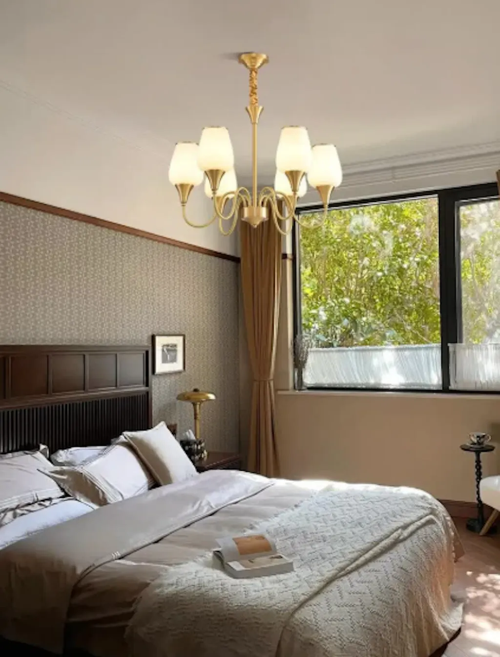 This chandelier naturally draws attention without overwhelming the room. Works great as a focal piece.