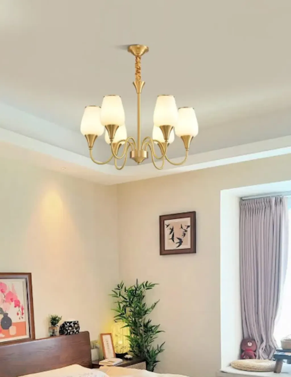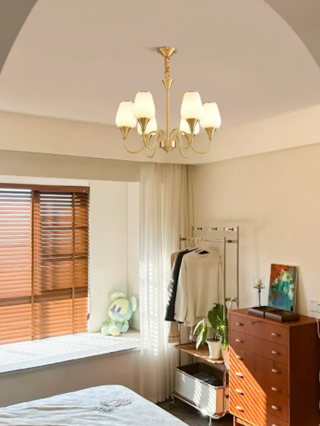 This fit my MCM home aesthetic perfectly. The cluster of globes adds so much visual interest without being too busy. The brass finish is a nice, muted gold that doesn't look tacky.