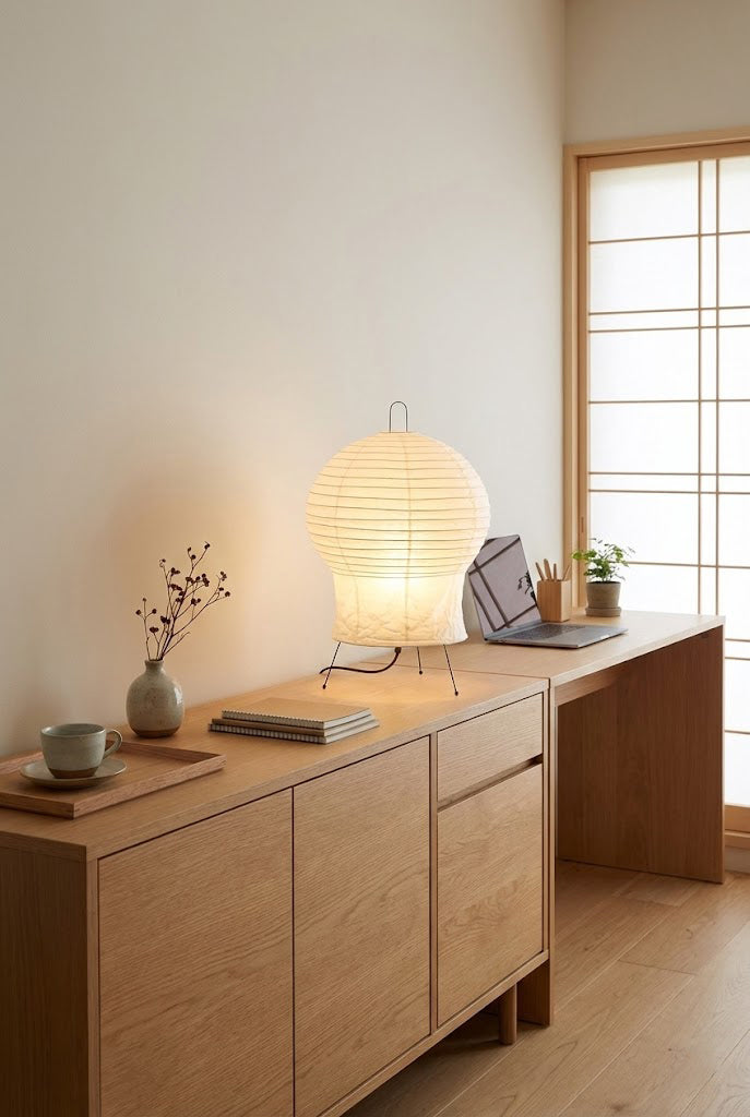The Akari 2N Table Lamp brings a gentle, sculptural glow to any setting with its distinctive balloon-like silhouette and softly gathered base. Elevated on slender tripod legs, it seems to float lightly above the surface, creating an airy, serene presence. When illuminated, the lamp emits a warm, diffused light that enhances reading corners, bedside tables, or living spaces with a calming, ambient atmosphere. Its playful yet refined form makes the 2N a timeless accent—perfect for interiors that embrace simplicity, softness, and modern poetic charm.