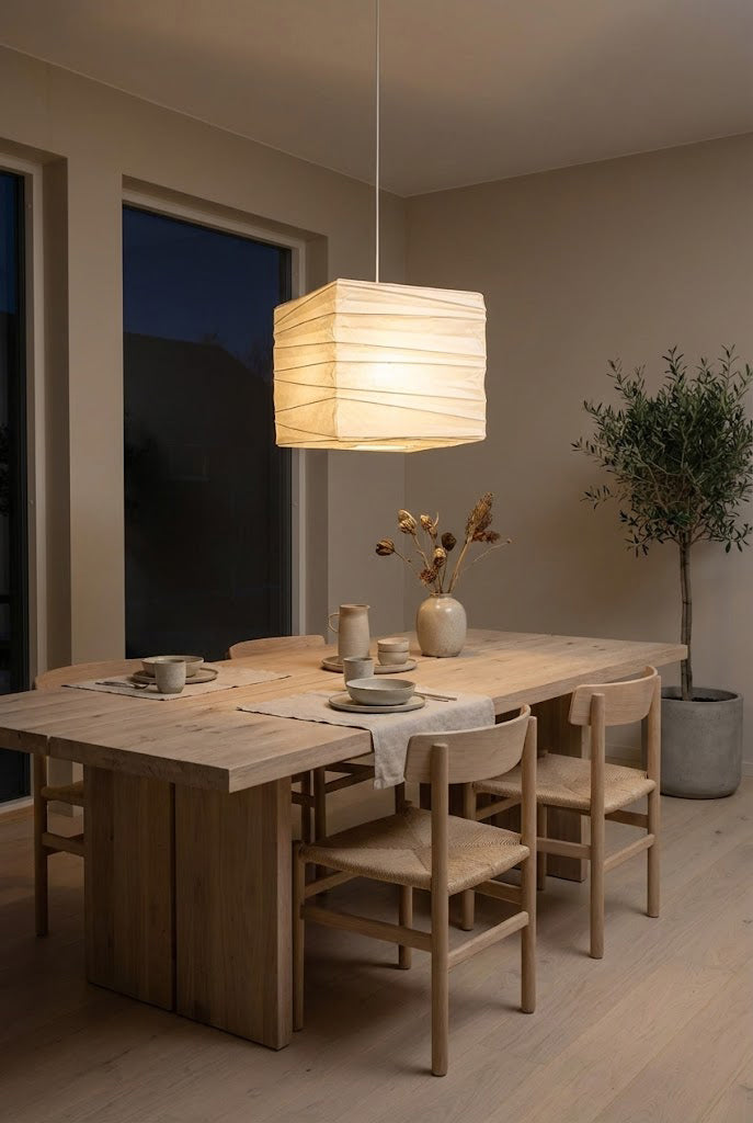 With clean lines and an iconic cubic silhouette, this pendant blends Japanese warmth and modern design, making a striking centerpiece for Japandi, mid-century, or contemporary spaces.