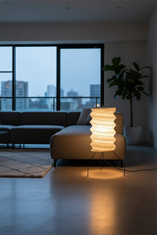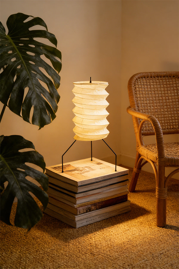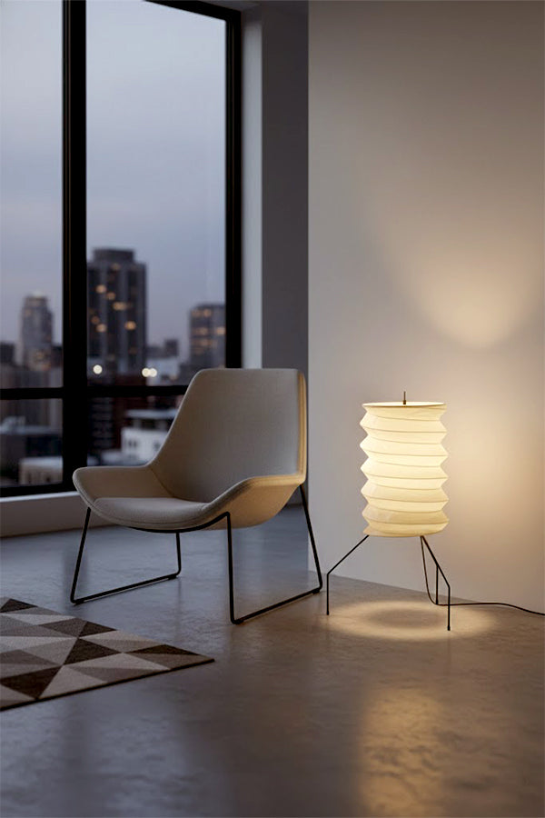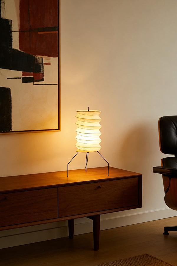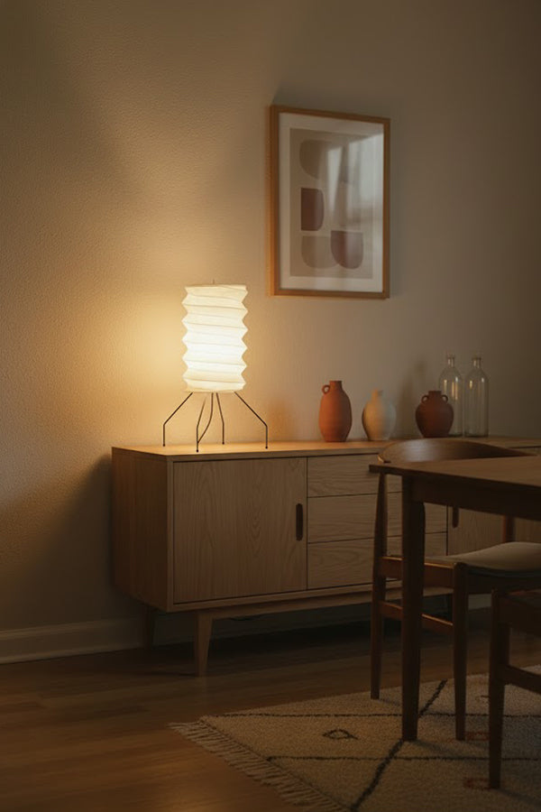 The Washi Paper UF2-31N Table Lamp brings soft, ambient illumination and sculptural charm to any interior. Its elongated, gently pleated shade diffuses light with a warm, calming glow that enhances bedside tables, reading nooks, or cozy corners. The lamp’s tall profile and textured surface create visual interest even when unlit, offering a blend of subtle artistry and functional lighting. With its minimalist silhouette and serene presence, the UF2-31N adds a sense of quiet elegance and inviting atmosphere to modern, minimalist, or natural-inspired spaces.