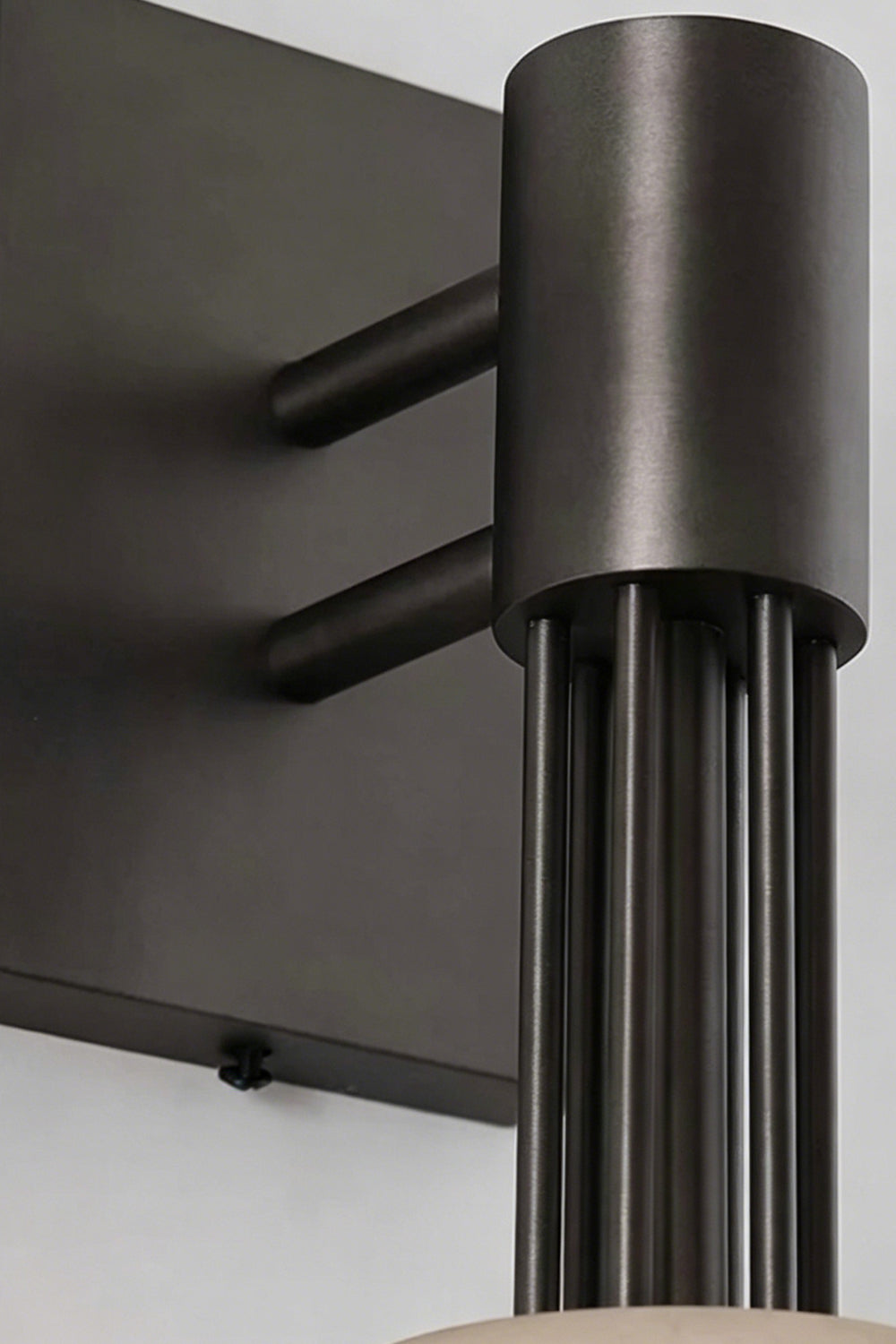 Precise multi-rod columnar frame provides a sophisticated, multi-level geometric contrast.
