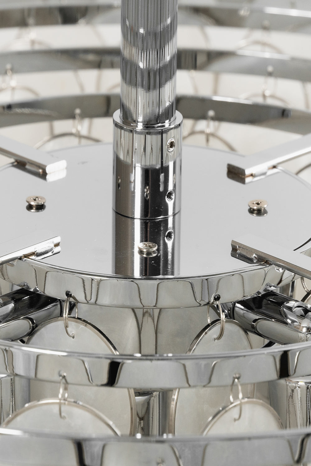 Cascading shell discs create a rich, multi-dimensional silhouette—sculptural style, always detailed and deep.