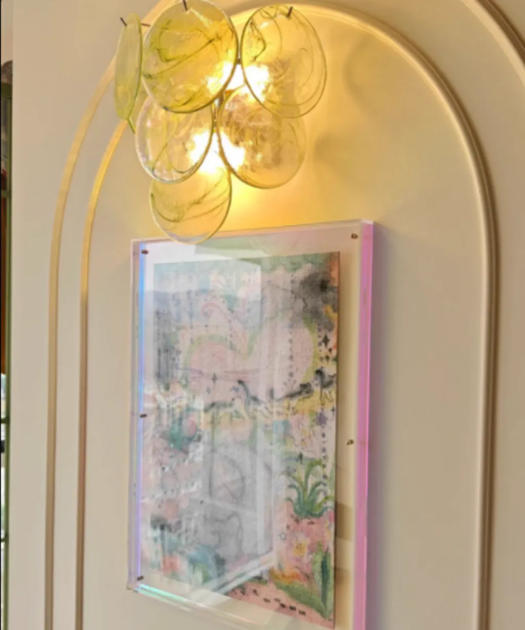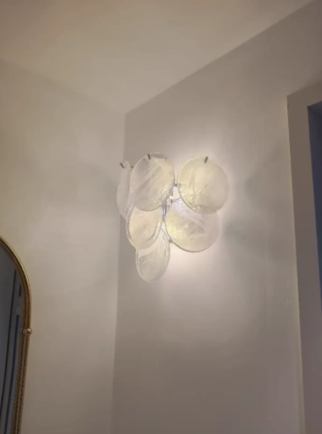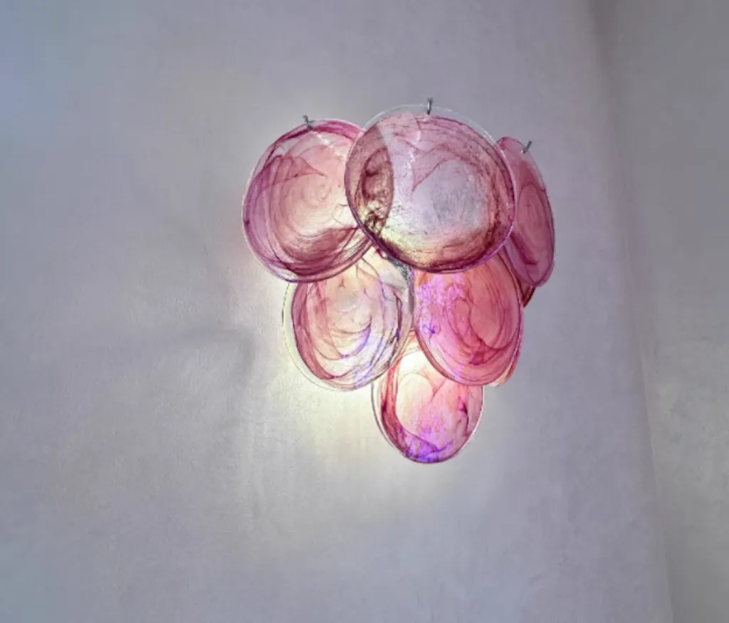 This Murano disc wall lamp looks amazing on my living room wall. The colors reflect beautifully when the light is on.