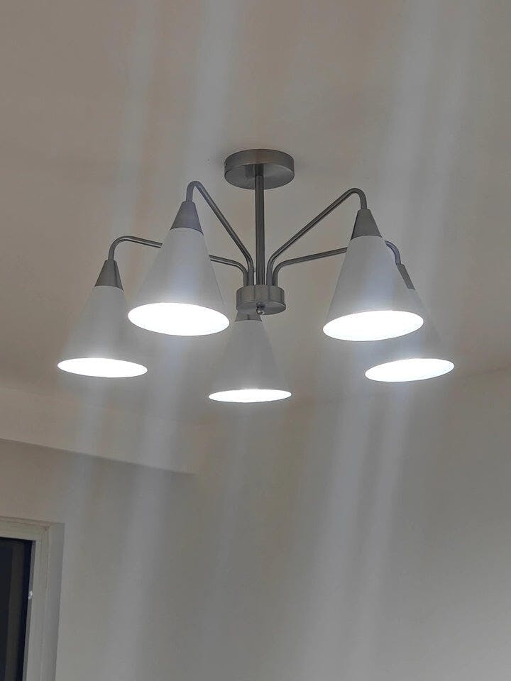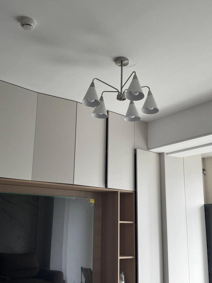We hung it above our six-person dining table. It's perfectly proportioned. The cascading conical shades create a dramatic effect without obstructing the view across the table. The light is bright yet soft, perfect for dinner. It's a stunning modern lighting solution.