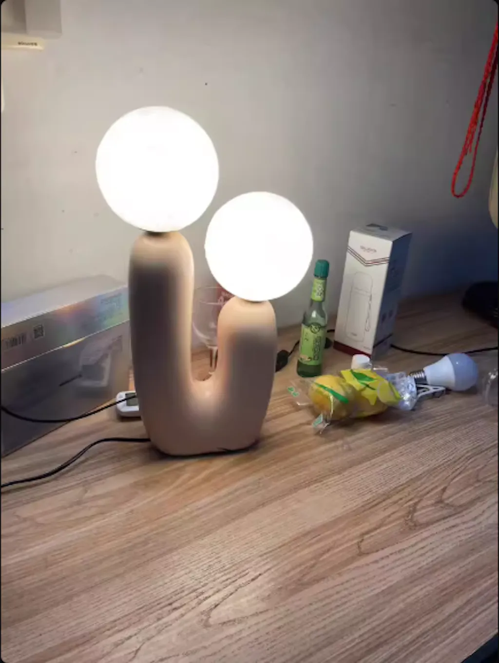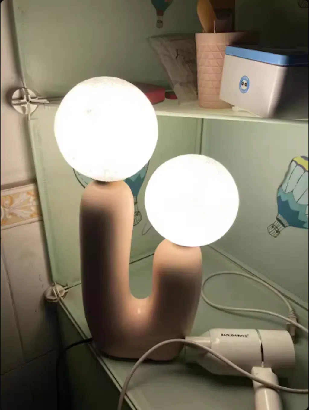 I added this decorative table lamp next to my reading chair. The light is comfortable and easy on the eyes.