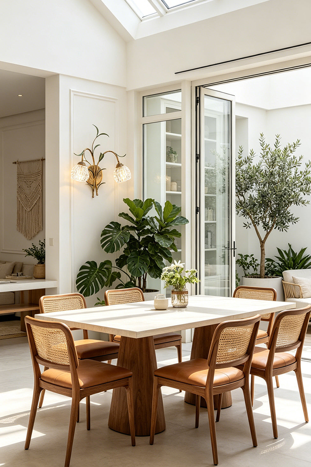 Clear textured glass shades diffuse light beautifully, creating a warm and multi-faceted glow throughout the room.