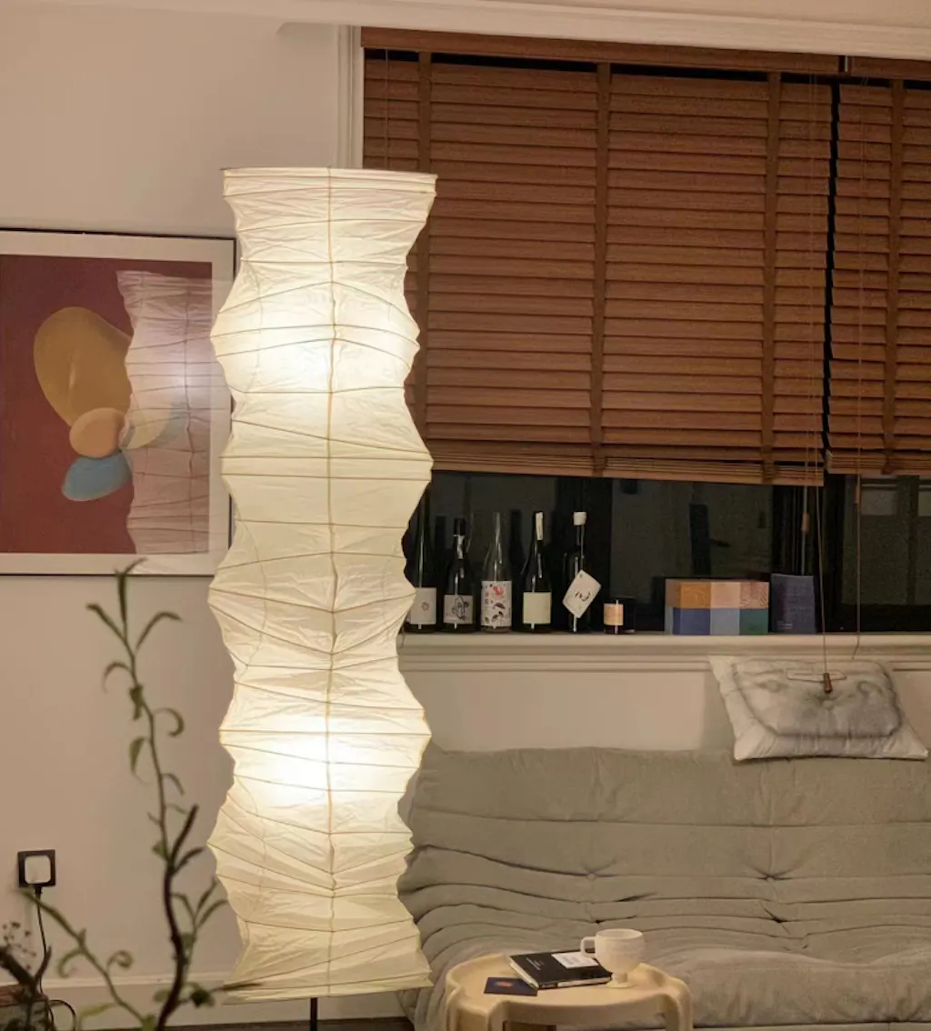 Its washi paper softly diffuses light, creating a warm, calming atmosphere in any space.